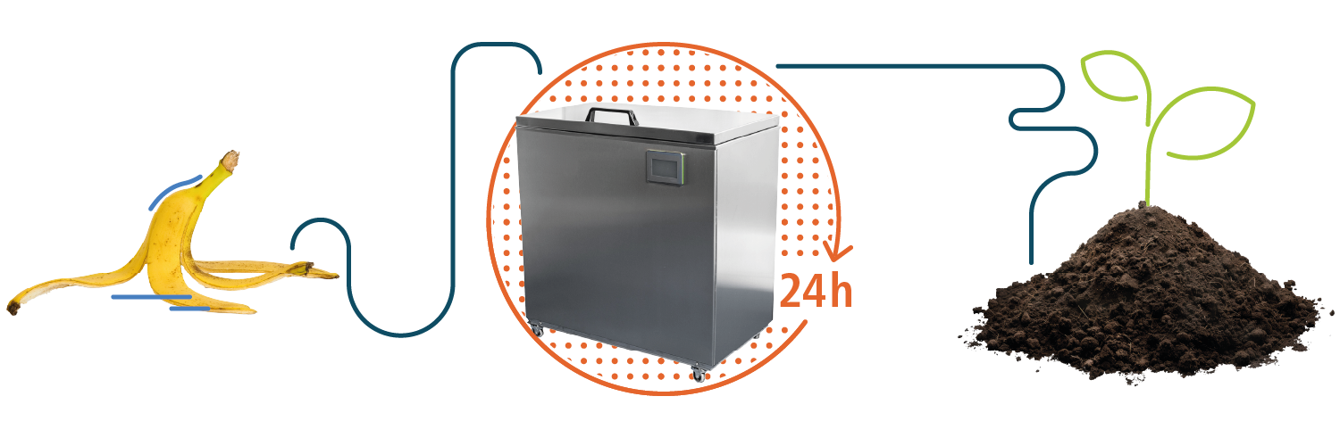 Oklin-Maschinen beschleunigen den natürlichen Zersetzungsprozess, indem sie Wärme, Feuchtigkeit, mechanische Bewegung und Luftzirkulation optimal kombinieren. Dies ermöglicht die Umwandlung von Lebensmittelabfällen in nur 24 Stunden.